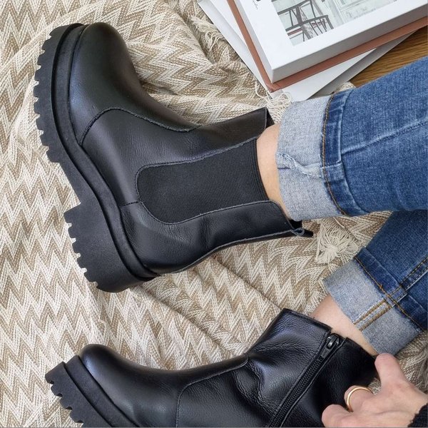 A Bota Chelsea Feminina Ame Concept é confeccionada em couro, elásticos laterais, bico redondo. Possui zíper interno facilitando o calce. Modelo super macio e estiloso, perfeito para usar com calça skinny e blazer, trazendo um ar mais glamuroso ao look.