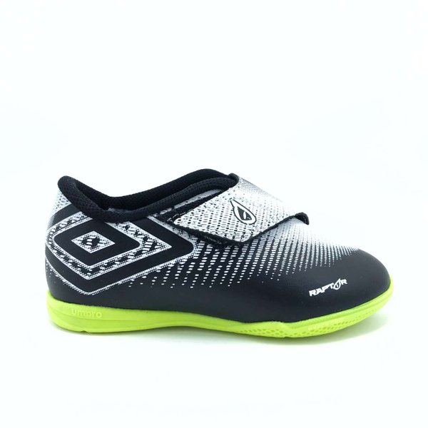 A Chuteira Futsal Raptor Infantil Umbro é confeccionada em material sintético, slogan da marca estampado na lateral externa, e nome da marca na lateral interna, fechamento por velcro, forração interna acolchoada e em material têxtil. Solado com tecnologia Non-marking, que se trata de um composto de borracha que não deixa marcas e proporciona excelente tração em todas as superfícies indoor. Apresenta também 360° Zone: Ponto de giro que facilita rápidas mudanças de direção, além de proporcionar ótima aderência e não marca a quadra.