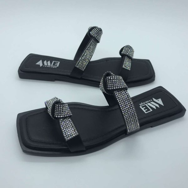 A Rasteira Strass Feminina Ame Concept, tem seu cabedal confeccionado em material sintético , possui duas tiras com aplicação de strass, o modelo é sofisticado e você pode usar quando e onde quiser. Sua palmilha é macia e o solado é emborrachado.
