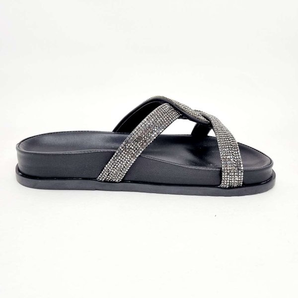 Adquira agora a Rasteira Papete Tiras Entrelaçadas Pedrarias na elegante cor preta e transforme cada passo em uma expressão de glamour e conforto. Seu estilo merece esse toque de sofisticação!