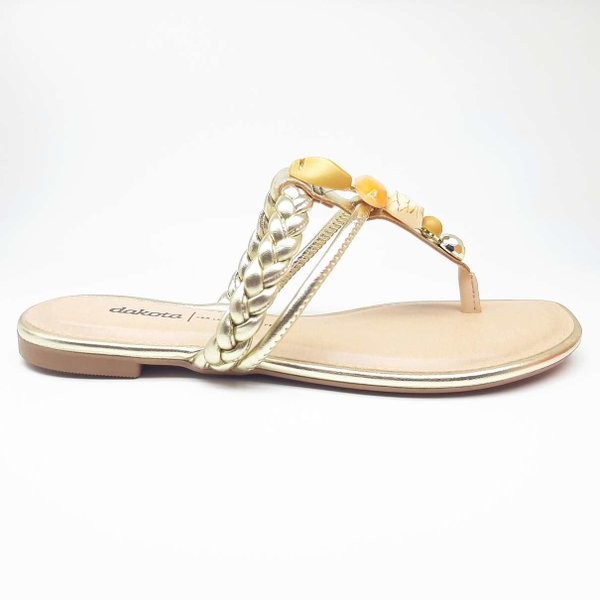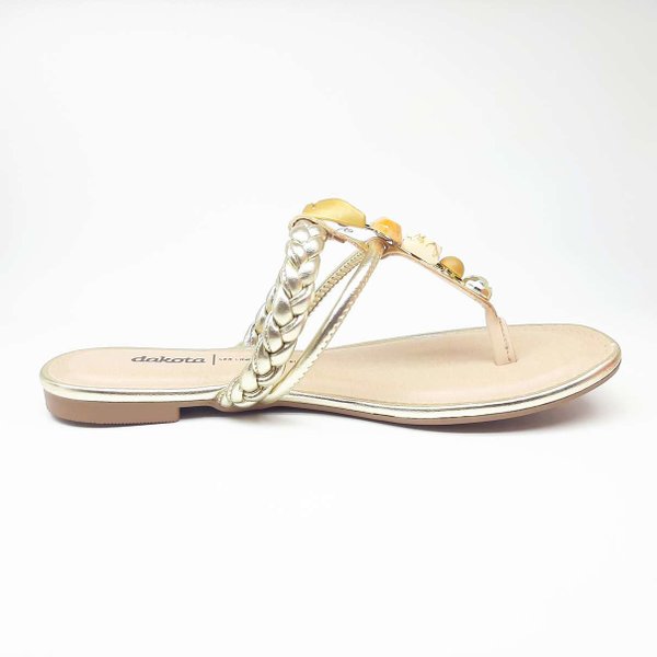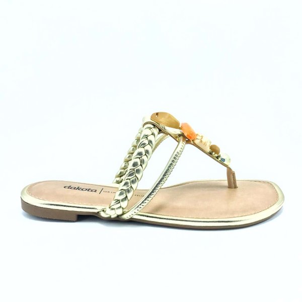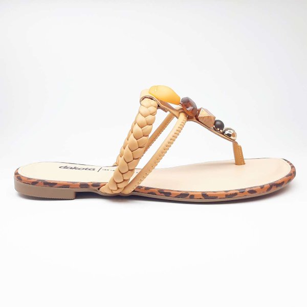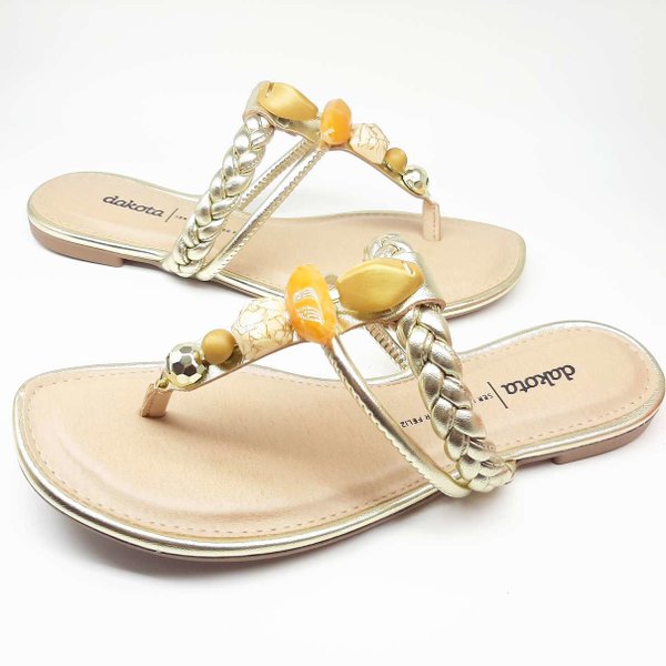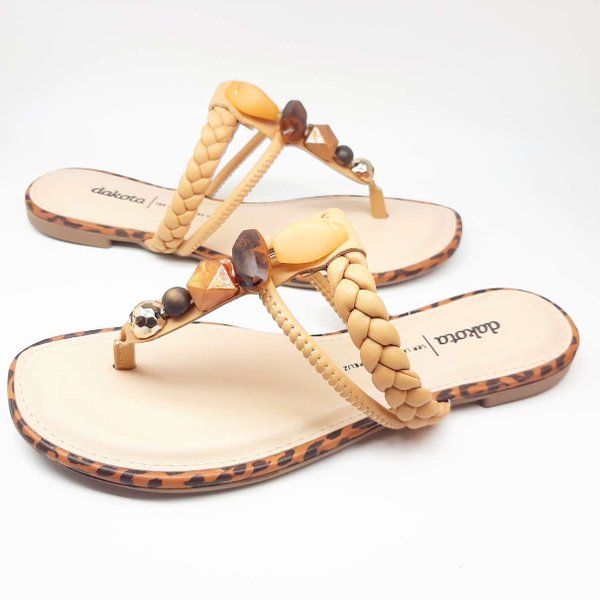A Rasteira Pedraria Feminina Dakota é confeccionada em material sintético, modelo com tiras trançadas sobre o dorso do pé e aplicação de pedras na tira que vem do meio dos dedos, deixando a sandália muito elegante, modelo de sola rasteira, tornando-a muito prática e indispensável para os dias de calor. Palmilha acolchoada, deixando o modelo ainda mais confortável. Moderna e cheio de estilo, essa rasteira de dedo com tira trançada é a cara do verão.