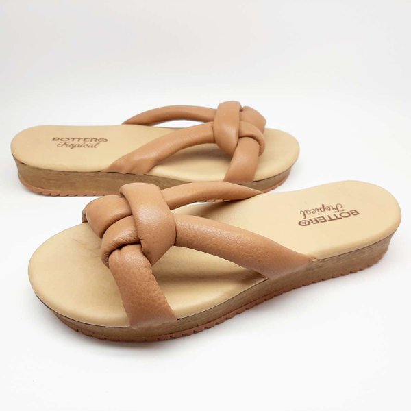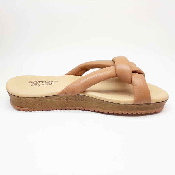 A Rasteira Flatform Feminina Bottero é confeccionada em couro. Solado flatform com palmilha super confortável e detalhes em tons de madeira. Conta com detalhe de nó.