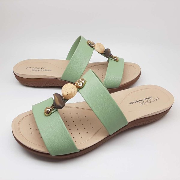O Chinelo Conforto Feminino Modare, é confeccionado em material sintético, possui palmilha acolchoada para maior conforto, solado de borracha com antiderrapante, o modelo conta com duas tiras largas no cabedal, com aplicação de pedras, deixando o calçado mais sofisticado.