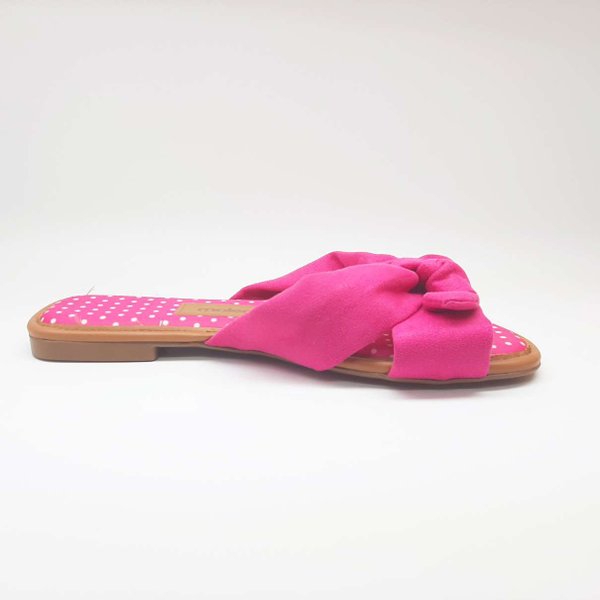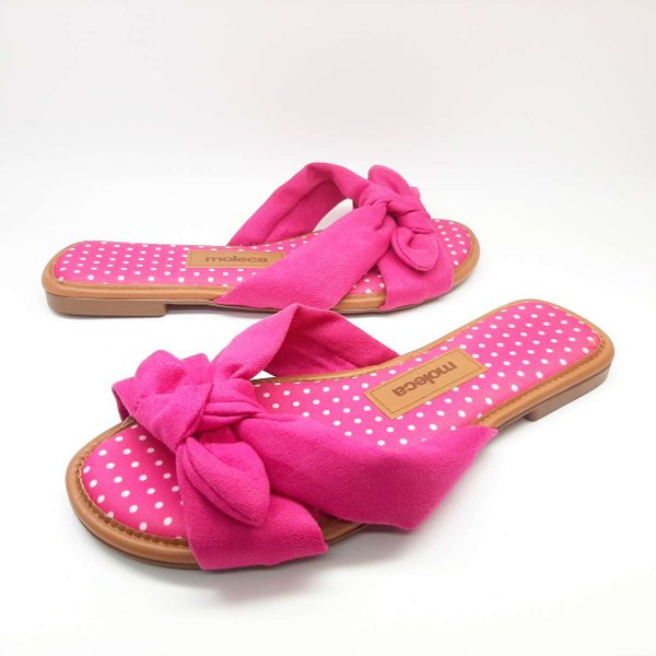 A Rasteira Com Laço Feminina Moleca, tem seu cabedal confeccionado em material têxtil, detalhe de laço no cabedal. Sua palmilha é acolchoada e tem forração em tecido com estampa de poá, além de ser muito macia. Sua sola é emborrachada, dando mais segurança ao caminhar.