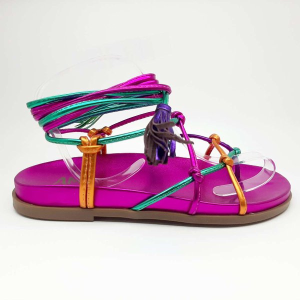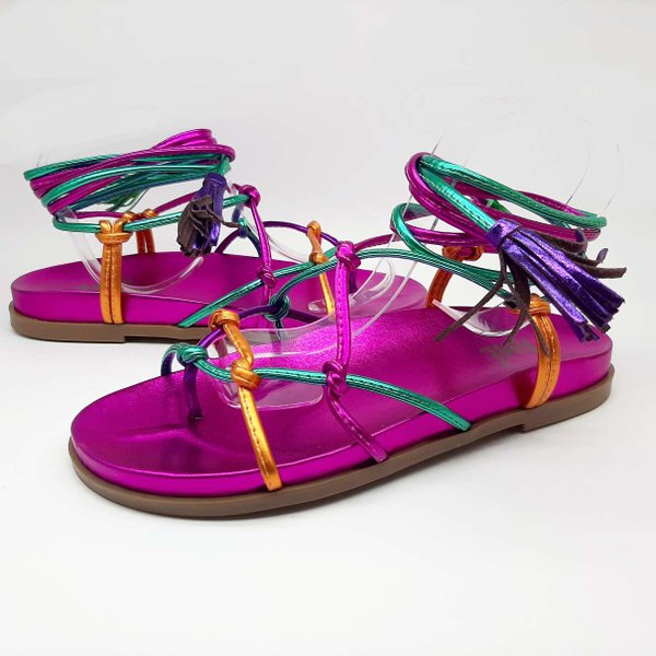 A Sandália Birken Feminina Amê Shoes é confeccionada em material sinstético com acabamento metalizado, modelo com cordas para amarração, solado emborrachado para garantir maior segurança e conforto ao caminhar. Linda, colorida e super ousada.