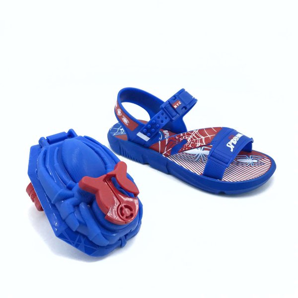 A Sandália Papete Infantil Homem Aranha é confeccionada em pvc, possui tiras sobre os dedos estilizadas e tiras no calcanhar para melhor ajuste aos pés, possui velcro para fechamento. Sua palmilha apresenta textura e estampa diferenciada, solado emborrachado flexível e resistente, proporcionando um maior conforto ao caminhar. Neste modelo de sandália vem um lançador de pulso, com pulseira para colocar no braço, na parte superior um espaço para guardar os 3 discos e ainda a parte do lançador para acoplar esses discos e começar a lançar.