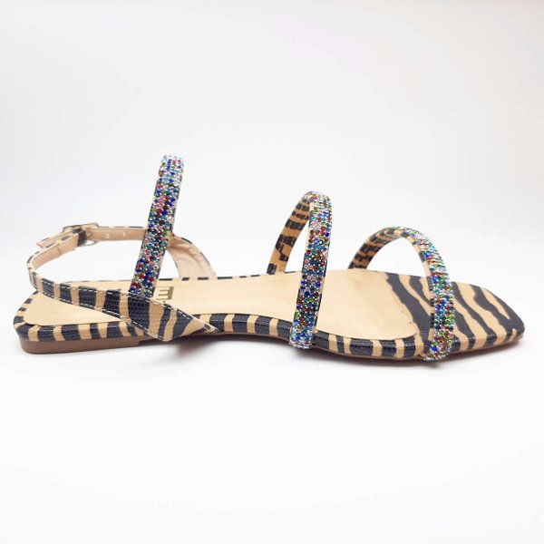 A Sandália Rasteira Feminina Ame Concept tem seu cabedal confeccionado em material sintético, acabamento com strass, deixando essa sandália de tiras finas super elegante e sofisticada, você pode usar quando e onde quiser. Sua palmilha com estampa de zebra é macia e ousada e o solado é emborrachado. Essa sandália já ganhou seu coração, simplesmente perfeita!