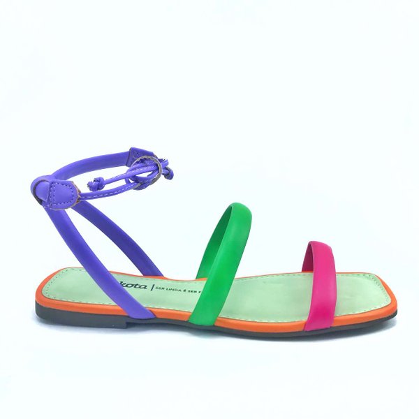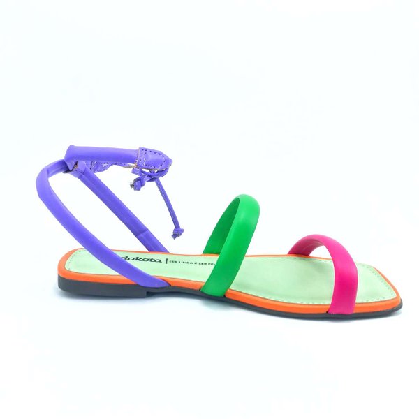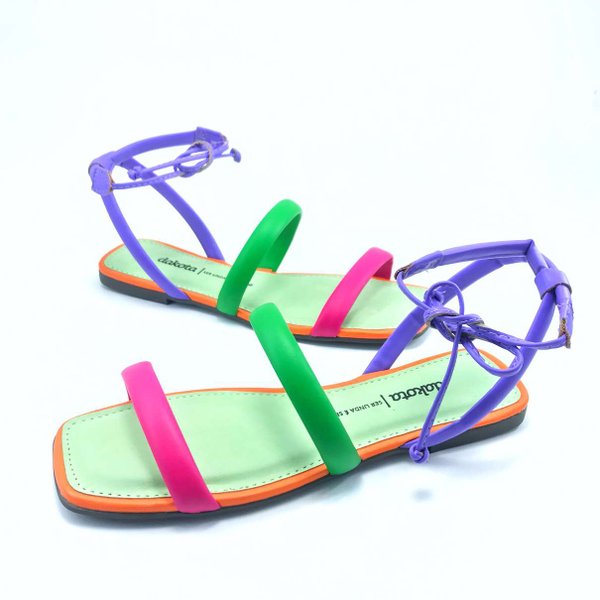 Sandália Rasteira Feminino Dakota é confeccionada em material sintético, bico quadrado super tendência atual. Seu cabedal é composto por tiras finas podendo ter variável de cor, deixando a peça ainda mais linda e moderna. Modelo com fechamento através de amarração no tornozelo, melhor se ajustando aos pés, solado em TR antiderrapante.