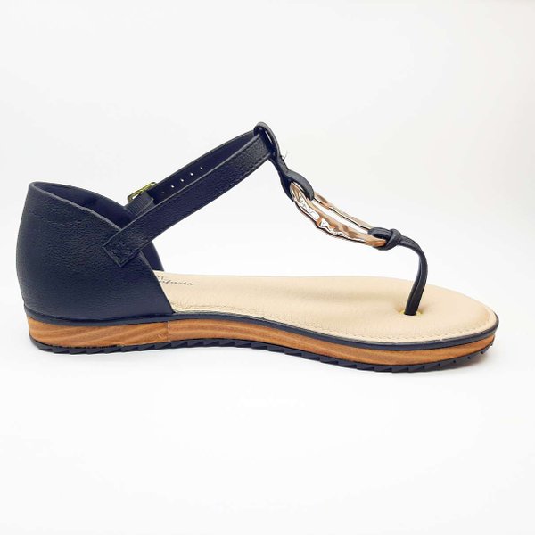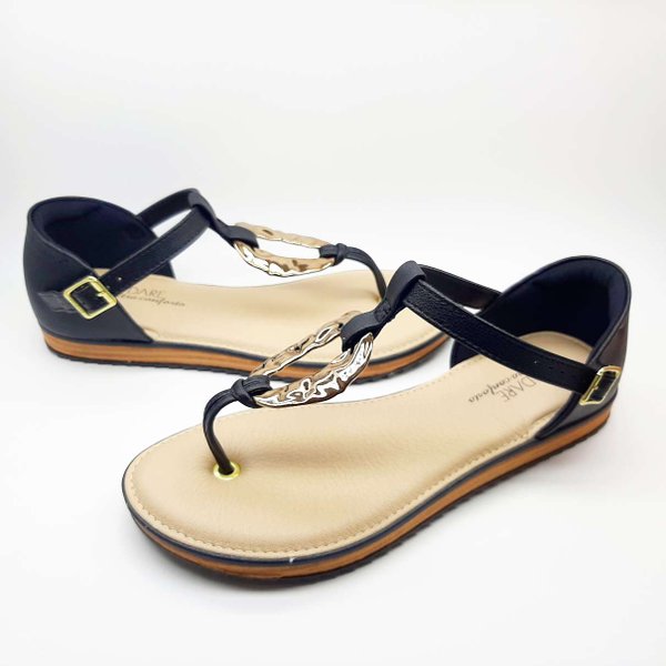 A Sandália Rasteira Feminina Modare é confeccionada em material sintético, modelo de dedo, fechada no calcanhar e fechamento por fivela. Seu cabedal vem com aplicação de peça metalizada, deixando o modelo muito elegante. Palmilha super macia e confortável, solado estilo flat emborrachado.