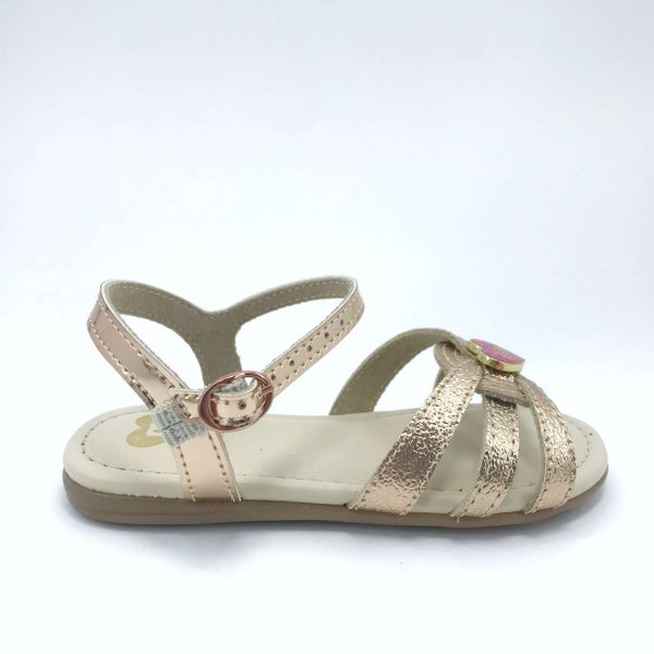 A Sandália Rasteira Infantil Molekinha confeccionado em material sintético com acabamento metalizado, possui palmilha acolchoada, para maior conforto durante o uso, solado em pvc com frisos antiderrapantes, para maior segurança, esse modelo vem com tiras finas no cabedal, possui calcanhar aberto. Seu fechamento é feito por fivela com ajuste.