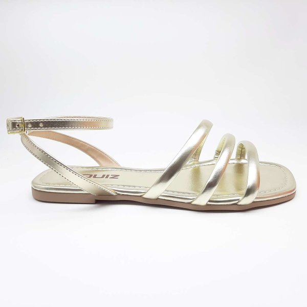 A Sandália Rasteira Feminina Quiz é confeccionada em material sintético, modelo com tiras finas, deixando o modelo muito elegante, calcanhar a mostra e fechamento por fivela na altura do tornozelo. Sua palmilha é acolchoada, tornando o modelo muito confortável. Solado emborrachado com frisos garantindo melhor segurança ao caminhar.
