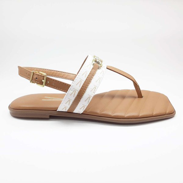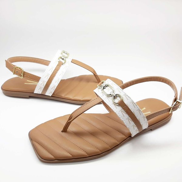 A Sandália Rasteira Feminina Vizzano é confeccionada em material sintético com monograma, modelo de dedo. Possui palmilha com alta absorção de impacto e umidade, solado flexível, emborrachado com frisos antiderrapante para garantir maior segurança e conforto ao caminhar. Seu fechamento é por fivela com sete opções de ajustes.