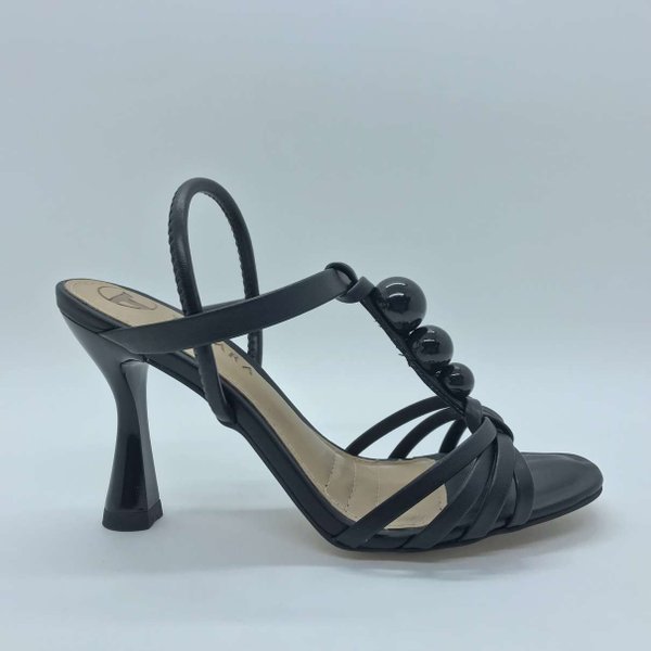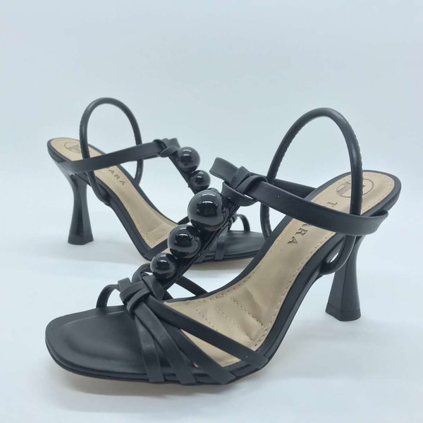 A Sandália Salto Fino Tanara é confeccionada em material sintético, o modelo vem com tiras finas sob os dedos e detalhe sob o peito dos pés, dando um charme adicional ao modelo, possui palmilha acolchoada para maior conforto, solado de borracha com antiderrapante, o modelo conta com salto fino e alto. O modelo é ideal para festas, casamentos e formaturas.