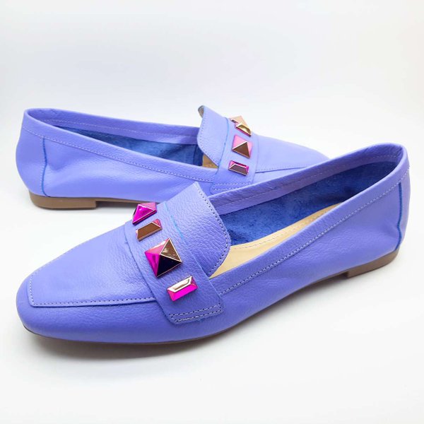 O Mocassim Feminino Amê Shoes é confeccionado em couro, cabedal com aplicação de pirâmides, que está super em alta para a estação. Sua forração interna é em material sintético macio, palmilha levemente acolchoada e confortável. Solado emborrachado com frisos proporcionando maior segurança ao caminhar.