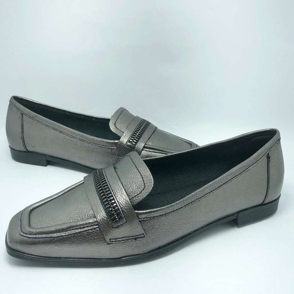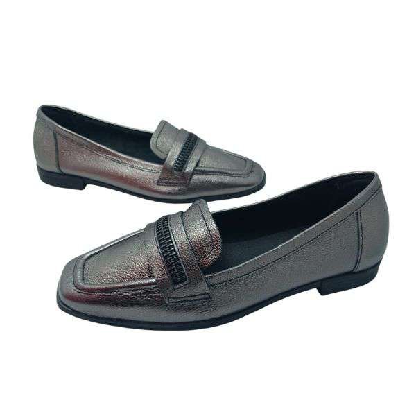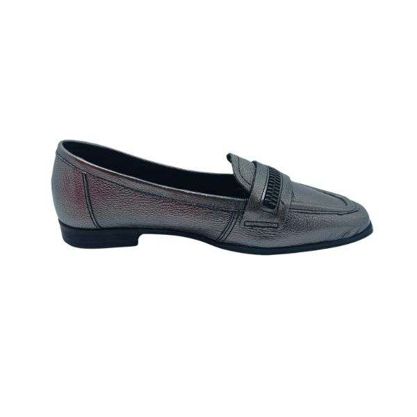 Seu acabamento metalizado confere um toque de modernidade e versatilidade, tornando-o uma escolha perfeita para diversas ocasiões, desde o ambiente de trabalho até eventos sociais. Com sua silhueta clássica de mocassim, este modelo oferece um visual atemporal que complementa uma variedade de looks.