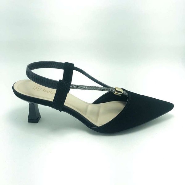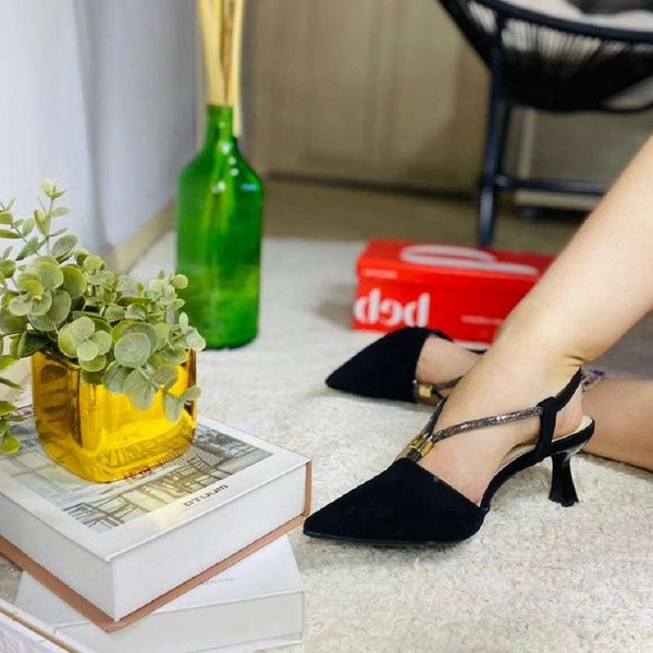 Seu estilo inspirado no clássico modelo Chanel, com bico fino e detalhes em matelassê no cabedal, adiciona um toque de luxo e sofisticação ao visual. O tom preto é versátil e combina facilmente com uma variedade de looks, seja para ocasiões formais ou casuais.