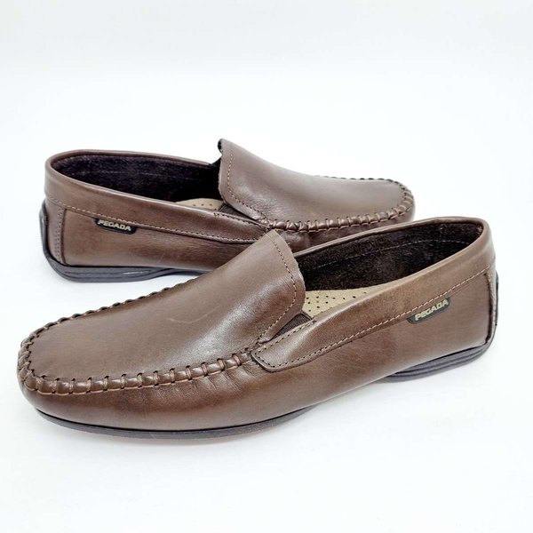 O Mocassim Couro Masculino Pegada é confeccionado em couro. Possui costuras nas laterais do cabedal, palmilha fixa ao calçado e bico arredondado. O modelo ainda possui elástico laterais, facilitando muito seu calce. Solado emborrachado com frisos proporcionando maior segurança ao caminhar.