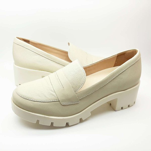 O Mocassim Salto Bloco Amê Shoes é confeccionado em couro, modelo com bico redondo. Sua forração interna é em material sintético macio, palmilha levemente acolchoada e confortável. Solado emborrachado com frisos proporcionando maior segurança ao caminhar.