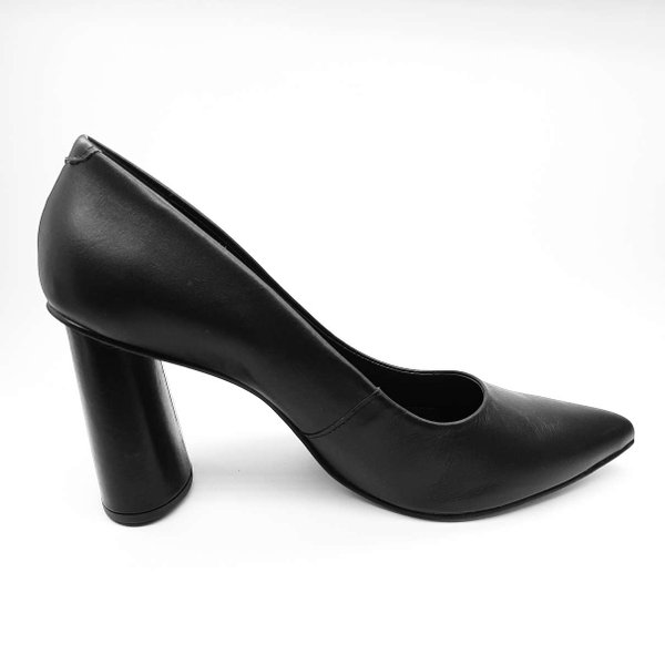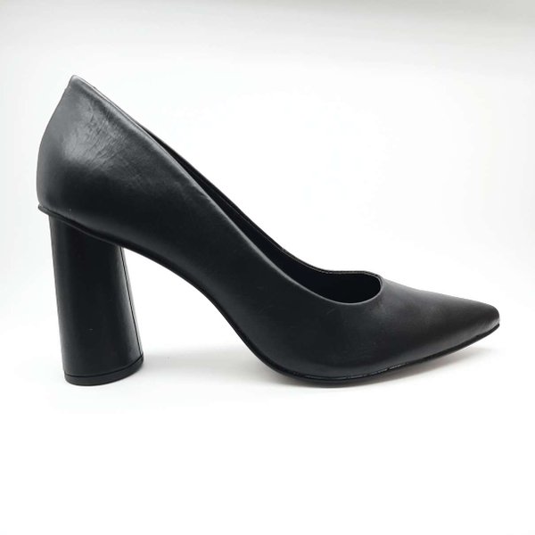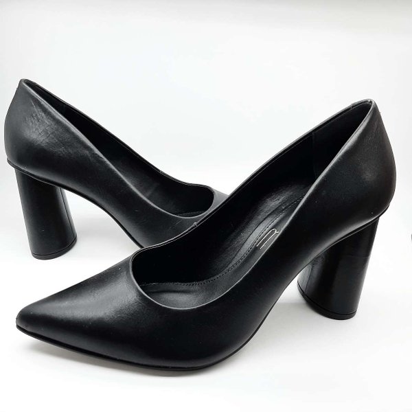 O Scarpin Salto Bloco My Shoes é confeccionado em material sintético. Modelo com bico fino e um salto bloco.