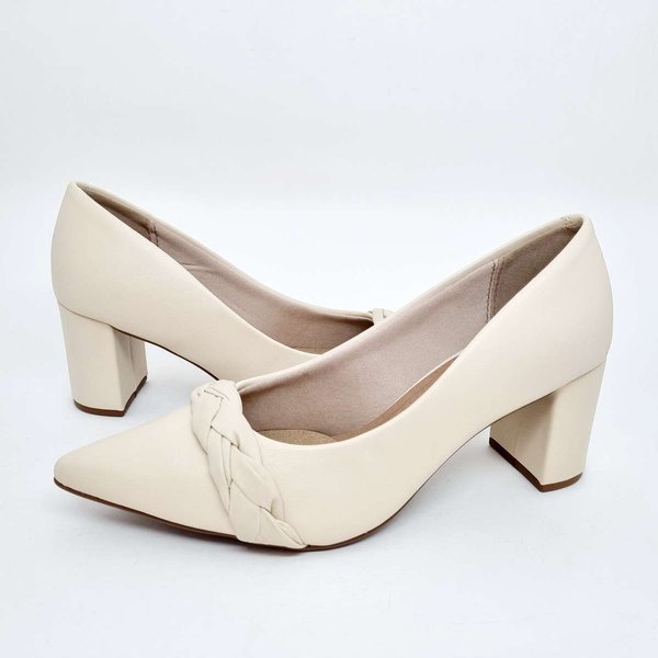 O Sapato Salto Bloco Feminino Beira Rio, tem seu cabedal confeccionado em material sintético, seu cabedal tem aplicação de trança deixando o modelo muito elegante. Seu salto é bloco, trazendo mais estabilidade para caminhar e seu bico é fino. Sua palmilha é macia e sua sola é emborrachada, dando mais segurança ao caminhar. Um clássico para mulheres elegantes que não abrem mão de conforto e um saltinho para o dia a dia.