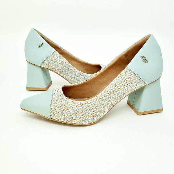 O Scarpin Salto Bloco Feminino Usaflex é confeccionado em couro com detalhe em tecido tramado nas laterias. A palmilha Everflex é desenvolvida em um material com memória permanente, proporciona a sensação de bem-estar ao caminhar e o forro Antibactéria UsaCare impede a propagação de bactérias e fungos, evitando odores indesejados. Além de amenizar ruídos e deixarem o calçado muito mais leve, os solados emborrachados possuem longa duração, boa aderência ao solo e absorção de impacto. Modelo clássico de scarpin que ganha um toque de modernidade com o detalhe em tecido. E sua cor é azul, simplesmente divino.