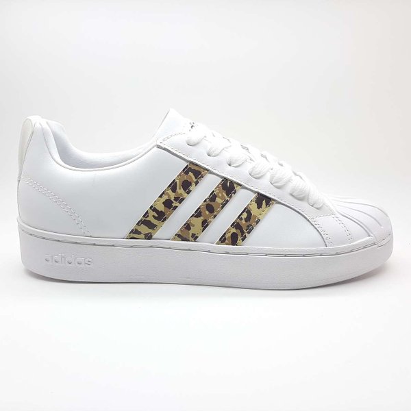 O Tênis Streetcheck Estampado Feminino Adidas tem seu cabedal confeccionado em couro. Com um design super moderno, peça chave da moda urbana, ele se torna o parceiro ideal para todos os momentos, é confortável e de fácil combinações. Seu interior é em material têxtil e acolchoado, palmilha forrada e macia. A entressola Cloudfoam oferece um amortecimento superior. Solado emborrachado com frisos para maior durabilidade do calçado e segurança ao caminhar. Seu fechamento se dá por amarração. O charme do modelo fica pelas litras caracteriscas da marca serem com estampa animal print.