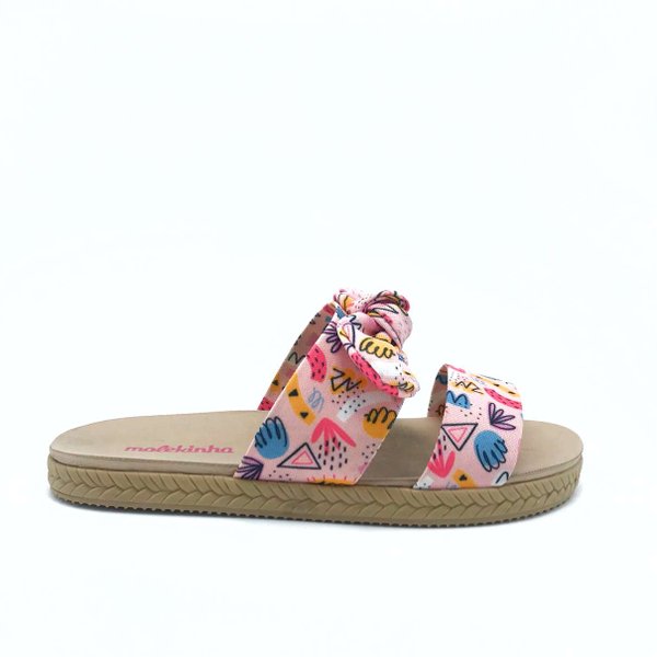 A Rasteira Flat Infantil Molekinha é confeccionado em material têxtil estampado, dando um charme adicional ao modelo, possui duas tiras, sendo uma com detalhe de laço. Pallmilha anatômica super macia e confortável, solado emborrachado. Modelo perfeito para a fase em que a menina já não é mais criança, mas os modelos adultos ainda não se encaixam. Perfeita para compor looks casuais com shorts e vestidos, prática e confortável.