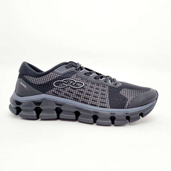 O Tênis Olympikus Masculino Aquarios tem seu cabedal confeccionado em material têxtil (tecido Jacquard) com elastano, possui vista e logo em high frequency com detalhe de aplicação gráfica, conta também com puxador em fita para facilitar o seu calce, seu forro é acolchoado. O solado possui camada dupla da tecnologia de amortecimento EVASENSE, que proporciona mais leveza, maciez e flexibilidade nas passadas. Seu solado frisado oferece durabilidade e aderência ao solo. Fechamento por amarração. Modelo indicado para o dia a dia, pisada neutra.